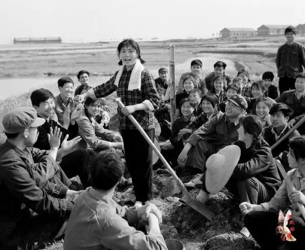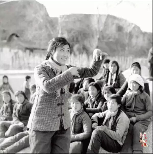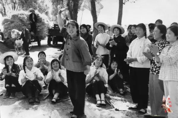 1964年春,山西省昔阳县大寨“铁姑娘”郭凤莲在田间为社员们唱地方戏。铁矛.摄