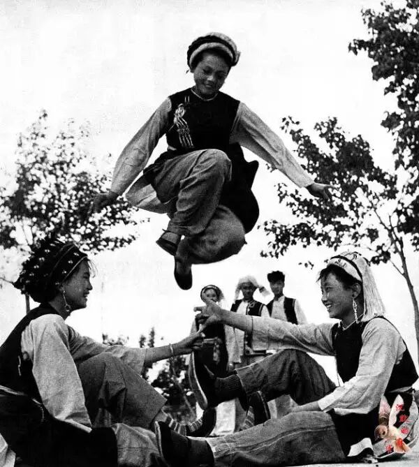 喜爱运动的白族姑娘玩游戏——看谁跳得高