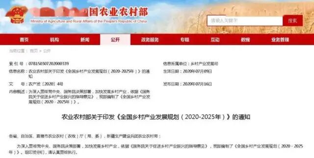 农业农村部关于印发《全国乡村产业发展规划(2020-2025年)》的通知