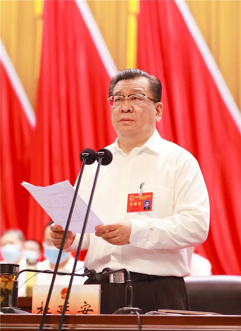 各位代表,同志们!人民代表大会制度是我国的根本政治制度,人大事业是党的事业的重要组成部分。我们要深入贯彻习近平总书记关于坚持和完善人民代表大会制度的重要思想,毫不动摇地坚持人民代表大会制度,坚持党的领导、人民当家作主、依法治国有机统一,坚定不移走中国特色社会主义政治发展道路。各级人大及其常委会要加强对“一府一委两院”的监督,全面担负起宪法法律赋予的各项职责,让制度优势持续彰显、治理效能不断提高。各位代表要倍加珍惜人民的信任,牢记政治责任和法定职责,真正做到为人民发声、为人民履职、对人民负责。各级党委要切实加强对人大工作的领导,支持人大及其常委会依法履行职责,为人大开展工作创造良好条件。“一府一委两院”要自觉接受同级人大及其常委会监督,认真执行人大决议决定,不断提高依法行政、依法监察和公正司法水平。