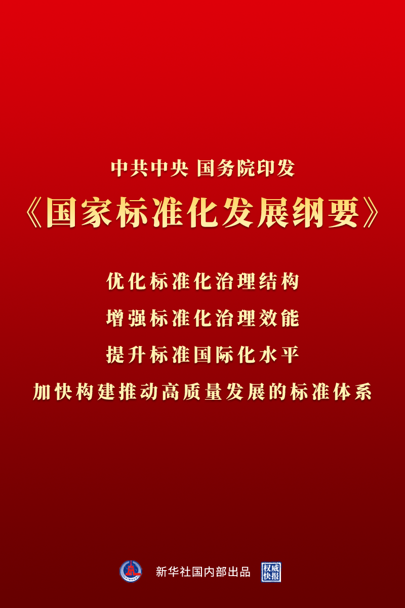 新华社北京10月10日电 近日,中共中央、国务院印发了《国家标准化发展纲要》,并发出通知,要求各地区各部门结合实际认真贯彻落实。