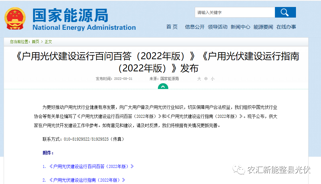 四、2022年8月31日,国家能源局《户用光伏建设运行百问百答(2022年版)》《户用光伏建设运行指南(2022年版)》,官方规范农户屋顶光伏市场。